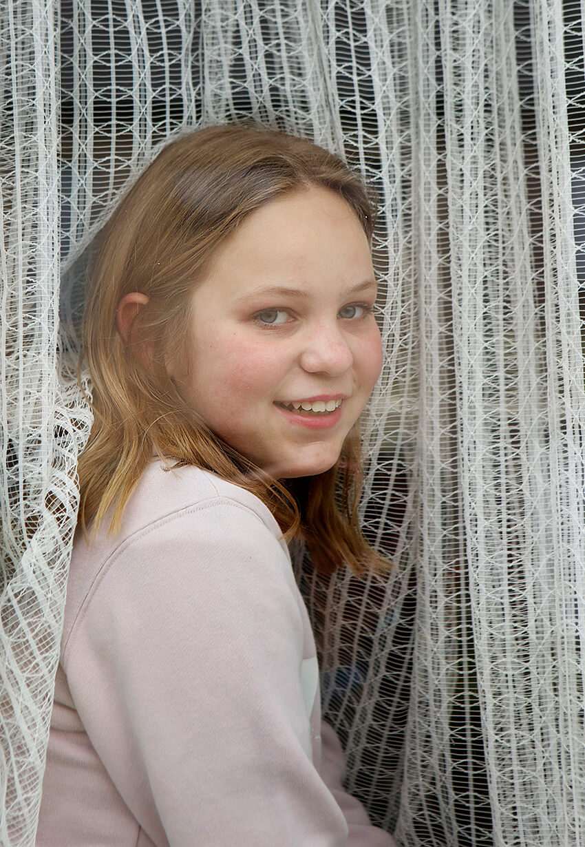 Freda (12) toen ze bij gelukig toeval haar nieuwe secundaire school bezocht