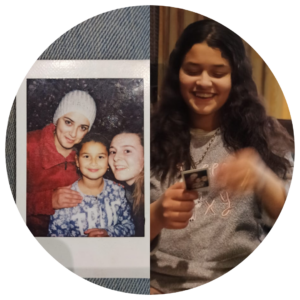 “Na een spannende start vond ik het echt leuk en keek ik uit naar die bezoeken. Ik weet nog dat we samen een ganzenbord hebben gemaakt. Ik heb nog een foto van toen. Kijk maar: mijn mama staat links, Alice rechts en ik sta in het midden. Ik bewaar die foto in een speciaal doosje op mijn kamer.”